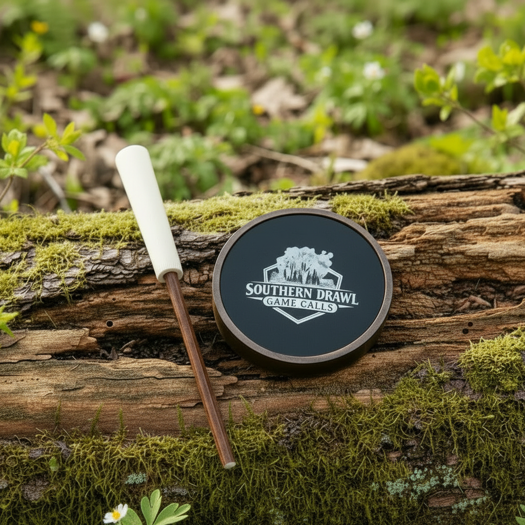 The Metal Mojo features an anodized aluminum calling surface over a glass soundboard in a walnut pot. Very user friendly call that produces aggressive raspy yelps and loud sharp cutts.