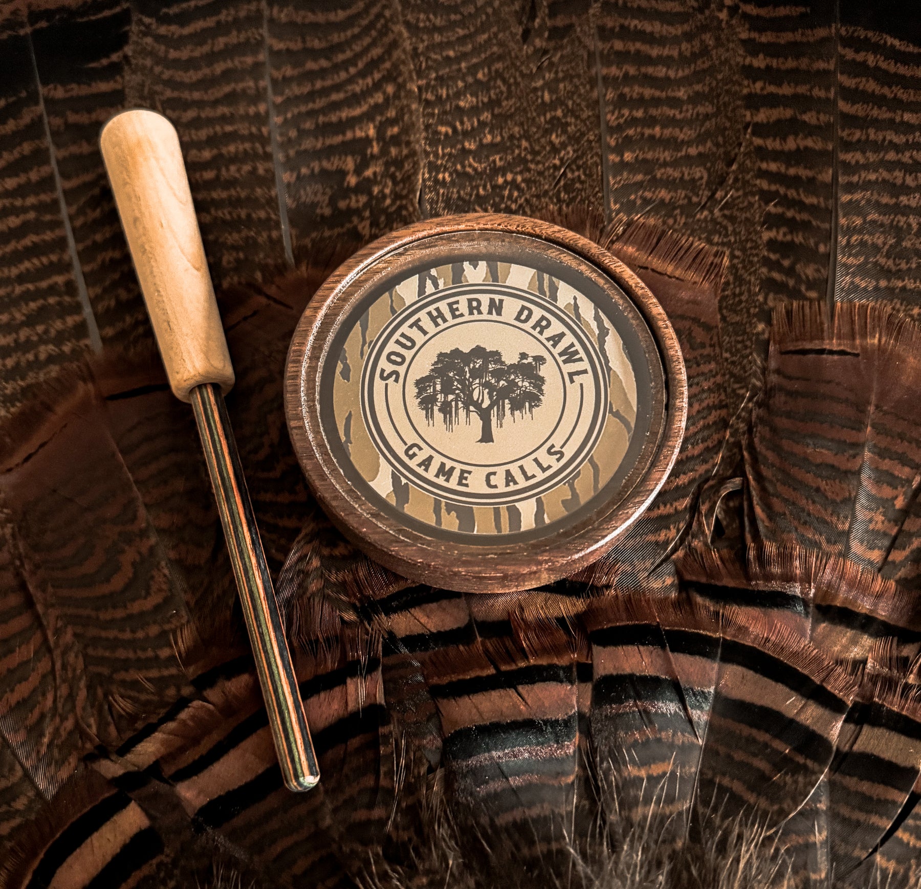 The same Southern Drawl Signature Glass call you know and love with a Bottomland sticker on the soundboard.